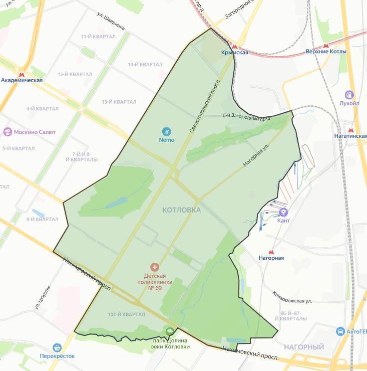 Друзья, добрый день, продолжаем Юг Москвы. Мы с Вами уже обсудили Донской и Южнопортовый. Движемся дальше - сегодня Котловка. С точки зрения административных границ, район выглядит так: С моей точки зрения, жилой массив расположен чуть-чуть восточней, как-то так: От Севастопольского проспекта на западе до жд Павелецкого направления на востоке и от Нахимовского проспекта на юге до Верхних Котлов на севере. Раньше район был чуть ли не главным воплощением ржавого пояса Москвы, но за последние 10 лет сильно изменился в лучшую сторону. Основное достоинство - близость к центру - 15 минут на метро до Кремля. Главная достопримечательность района - горнолыжный комплекс Кант Помимо стандартной советской застройки, есть современные жилые комплексы: Если ищете строящиеся проекты от застройщика, обратите внимание на ЖК Twelve А мы с Вами попробуем найти интересные варианты по соотношению цена/качество: 8-ой этаж 9-этажной панельки серии II-49 1980 года постройки. Вид из окон на "Кант". Зимой, пр