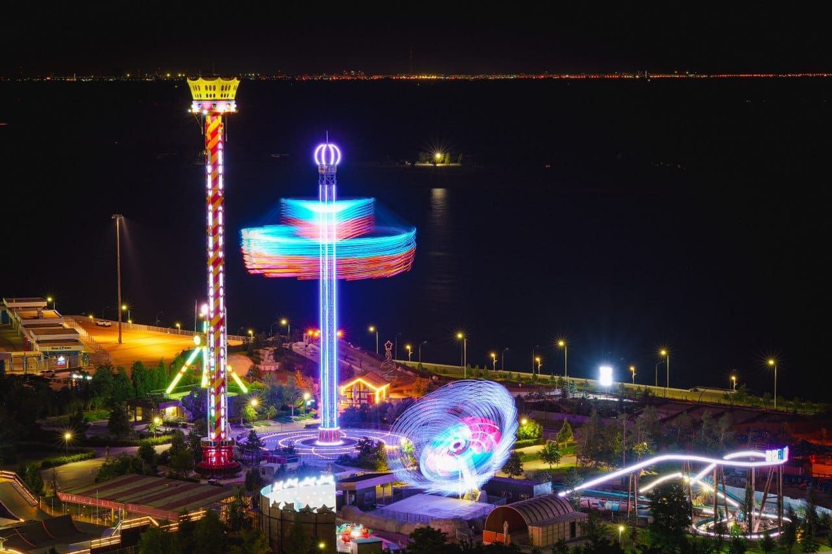 На «Башне свободного падения» в Центральном парке Волгограда засияла новая подсветка