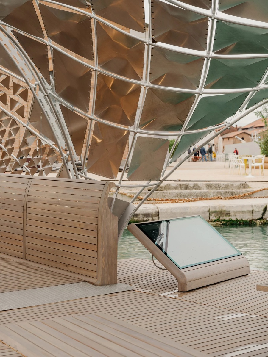 Норман Фостер, в партнерстве с Porshe, создал подвесной сверкающий мост для Венецианской Архитектурной Биеннале `25. 37-метровая временная конструкция расположена в Арсенале, и связывает набережную с плавучим понтоном-причалом для лодок, катеров и ещё каких-то штуковин (см. фото). Таким образом, авторы проекта исследуют, как новые транспортные средства могут быть интегрированы в исторический контекст Венеции. Внимание, вопрос: что именно изображено на 8 фото, почему оно так низко, и можно ли свайпать вправо, босиком, если снять кроксы. #Архитектура