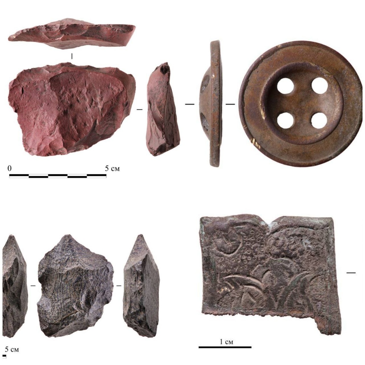 «Основную массу составляют предметы эпохи верхнего палеолита, а верхние слои памятника содержат более поздние находки. Наиболее интересной их них является бронзовая поясная бляшка с растительным орнаментом. Она относится к эпохе средневековья, то есть человек, который ее носил, жил примерно 1000 лет назад», – рассказал Александр Дубатов, заместитель руководителя компании подрядчика.