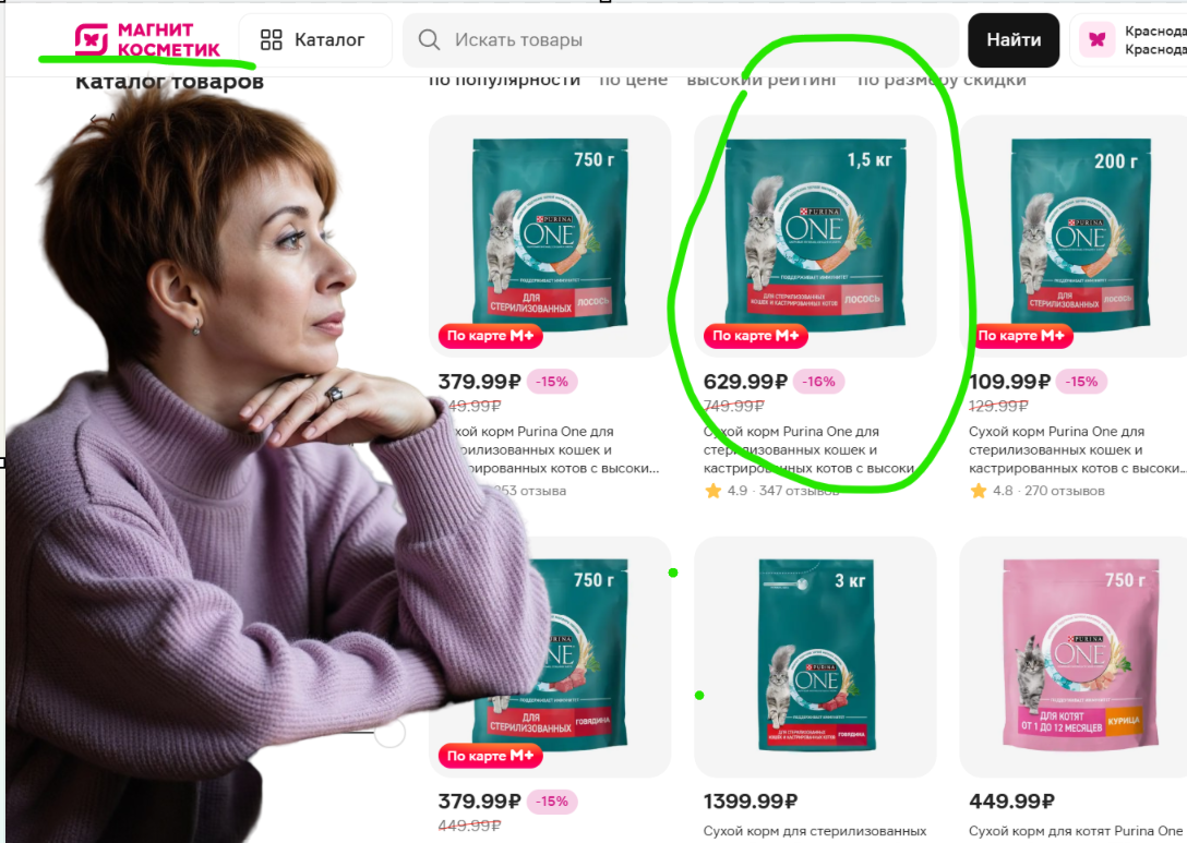Даже без скидки здесь ДЕШЕВЛЕ, чем в обычном продуктовом Магните. Уже сталкивалась с тем, что в Магнит Косметик Феликс в пакетиках покупала дешевле, чем в Магните, ну вот теперь еще и сухой корм.
