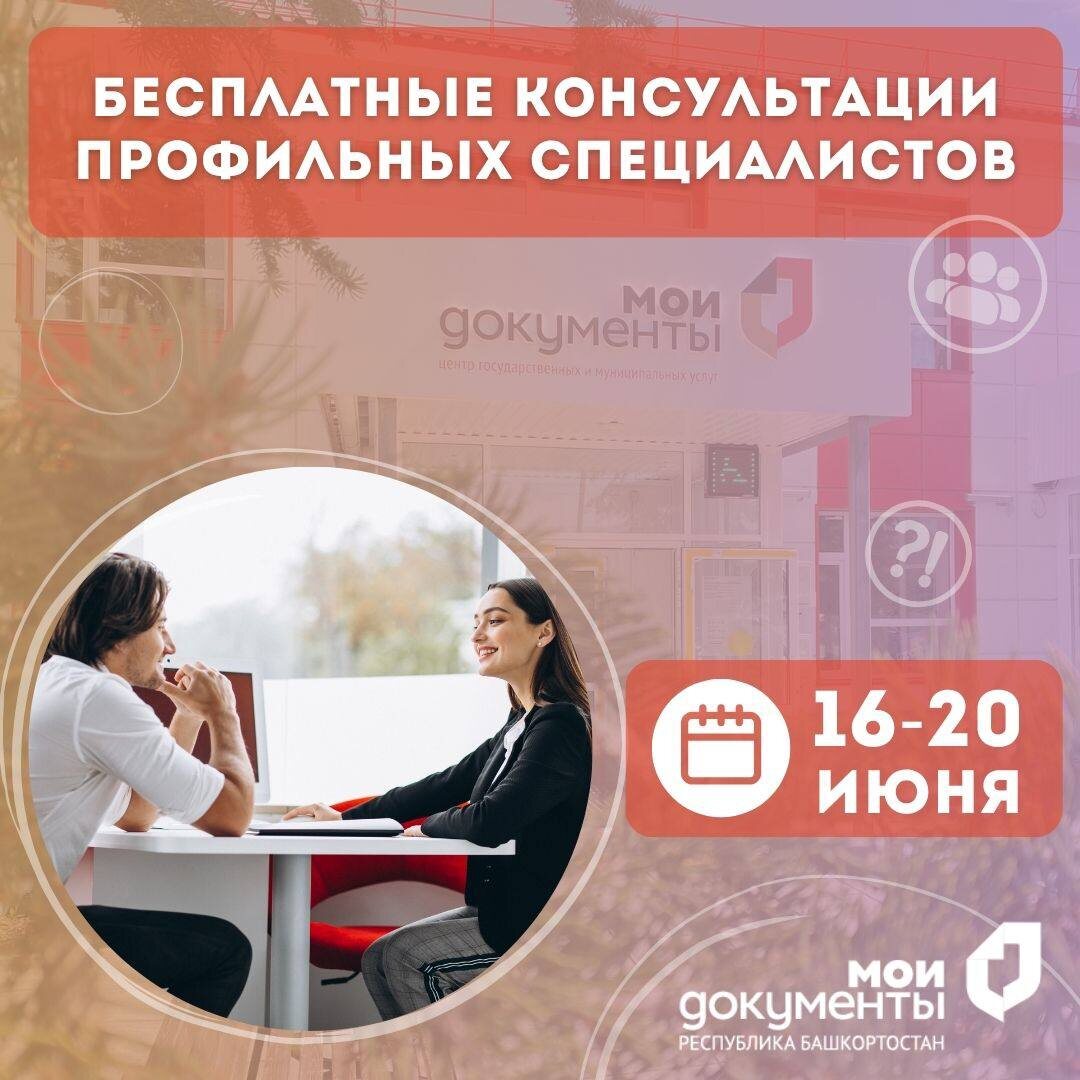 Бесплатные консультации профильных специалистов в офисах МФЦ Башкортостана с 16 по 20 июня