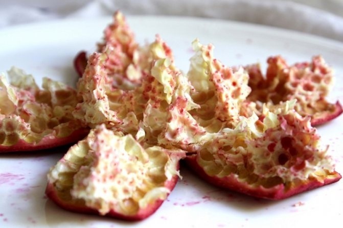 ГРАНАТОВАЯ КОЖУРА используется для полоскания рта при кровоточивости десен, стоматите: 1 ст. л. сухой измельченной кожуры заливают 1 ст. горячей воды, кипятят 30 мин, процеживают и доводят объем до 1 ст. Пасту, приготовленную из отваренной кожуры и зерен граната, накладывают на пораженные места при экземе. Перепонки из плодов граната, высушенные и добавленные в чай, помогают избавиться от тревоги, снять возбуждение. Гранатовые косточки полезны при гормональных нарушениях в климактерический период — их нужно съедать вместе с зернами граната.