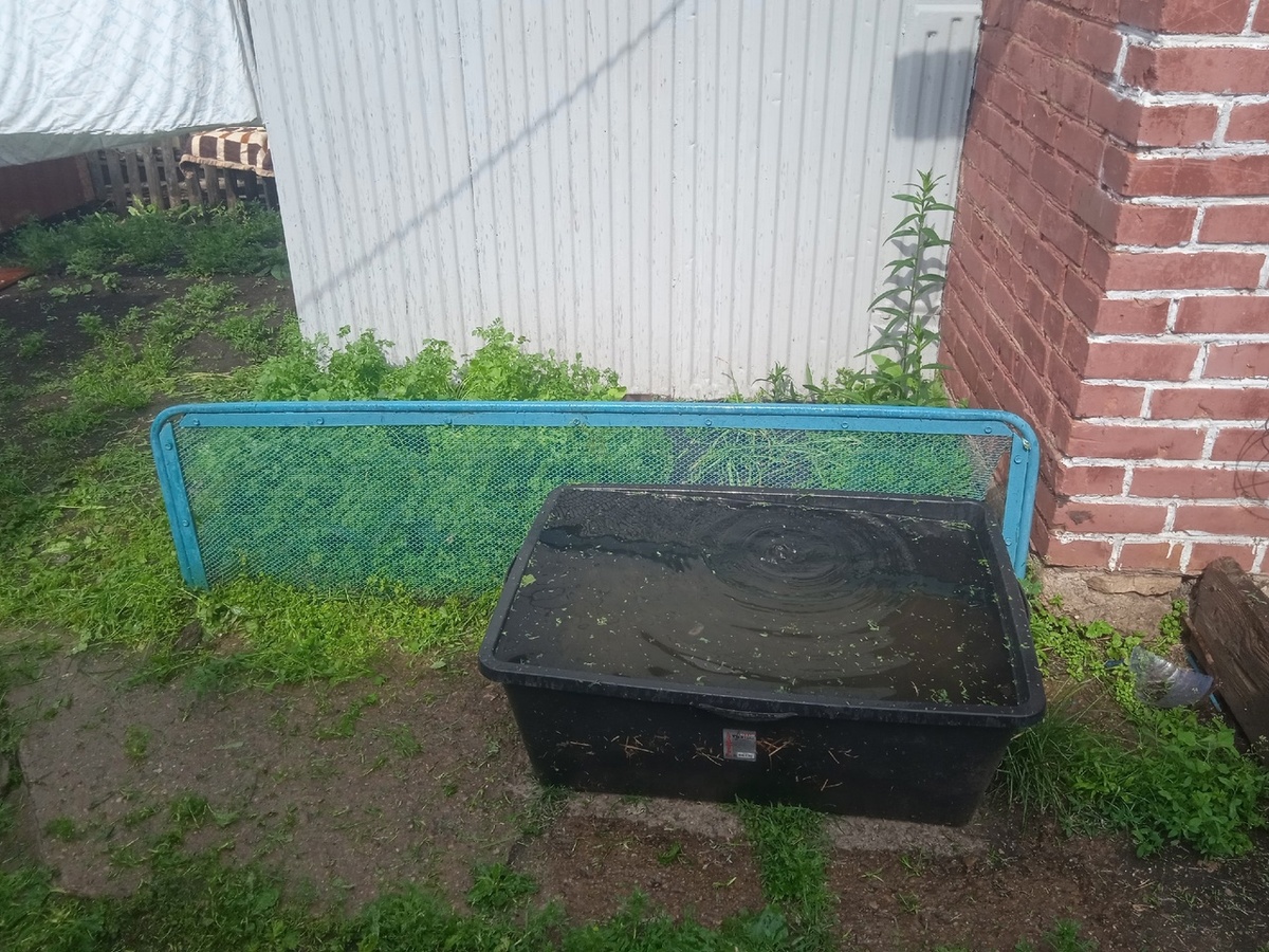 Всю ночь моросил дождик. Мелкий-мелкий, еле капал. Посмотрите, сколько за ночь с крыши вода набралось! Вот тебе и моросил. Хорошее дело, картошку Вике полил и всё остальное. Нет, меня, конечно, никто не принуждает к работе, но не сидеть же весь день сложа руки. Приехала в деревню - веди себя как положено, помоги, чем можешь. Я могу поливать, полоть, готовить. Косить не могу - простой косой не умею, а триммер очень тяжёлый. Не умею топить баню - у меня огонь в печке тухнет, зато люблю в ней мыться. В этом году Вика посадила капусту. Говорит, раньше пробовала - плохо у неё растёт. Девочки, кто знает, что надо капусте? Окучивать её надо? Вот она. С виду вроде весёленькая. Когда кочаны-то завязываться должны? И кинза есть, это для меня. Я очень люблю, дома тоже сажаю, много, морожу на зиму. Вика (хозяйка) ест кинзу со мной за компанию))) Говорит - раньше не ела вообще. А зря - полезная травка. Сколько лет велику? Судя по модели - вполне может быть как 20, так и 50. Как думаете, сколько он