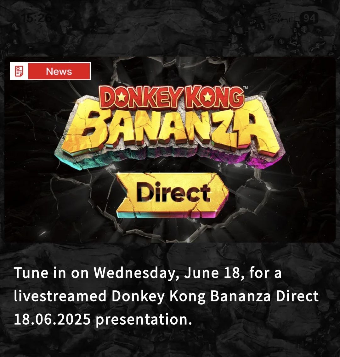 В эту среду пройдет директ от Nintendo, но не стандартный, а чисто по Donkey Kong Bananza. Возможно посмотрим с Вульфом, но скорее всего не в прямом эфире. Или вообще запишем видос.