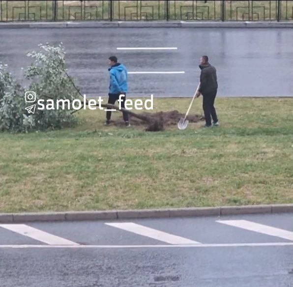 Вчера в Некрасовке, на проспекте Защитников Москвы, два молодых человека украли посаженное дерево