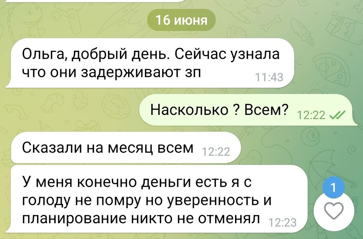 Сегодня прямо с разницей в пару часов получила 2 сообщения: - одно от любимого клиента Валентины с новостью (читаем ниже) - второе (на скрине) от любимого клиента Наталья (про компанию, которая предложила оффер, но скрыла про задержки ЗП и бизнес не из перечисленных ниже отраслей) Вот такой новый, тревожный тренд (или не тренд), что скажете? 🔽🔽🔽 На фоне падения темпов роста зарплат возобновились задержки с их выплатой. Размер долга перед сотрудниками коммерческих и бюджетных структур достиг падемийного уровня и имеет все шансы на дальнейший рост. О том, что обострения проблемы со своевременностью выплаты заработной платы не избежать, стало понятно в прошлом году. По данным Федеральной службы по труду и занятости (Роструд), за данный период территориальные органы ведомства получили 18,4 тыс. обращений граждан по данной теме – на 37,4 процента больше, чем годом ранее. В отчётах Роструда говорилось, что основными рисками, провоцирующими задержки оплаты труда сотрудников, являю