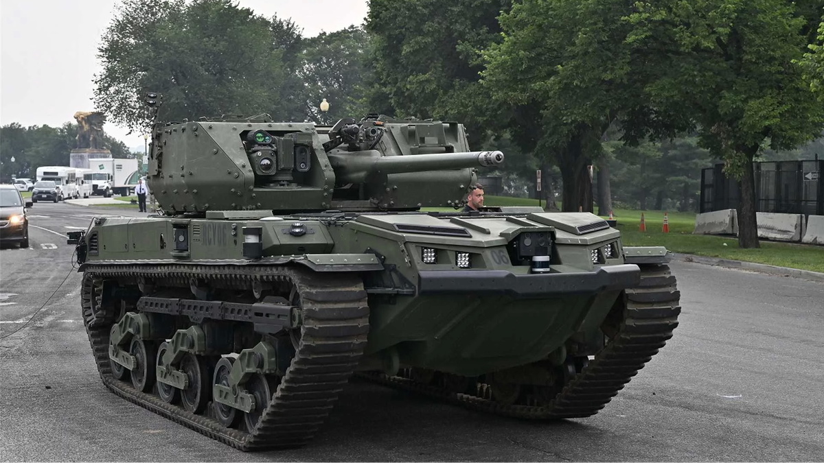 Боевая роботизированная машина Ripsaw M5 с башней MCT30, представленная на параде в честь 250-летия армии США в Вашингтоне. Фото: Министерство обороны США Во время парада в честь 250-летия армии США, состоявшегося 14 июня 2025 года в Вашингтоне, одним из самых ярких событий стала публичная презентация роботизированной боевой машины Ripsaw M5, представленной в полностью вооруженной конфигурации с турелью Kongsberg Protector Medium Caliber Turret-30 (MCT-30). Об этом сообщает Army Recognition. Оснащенная автоматической пушкой Bushmaster калибра 30 мм/40 мм и спаренным пулеметом калибра 7,62 мм, эта новая машина представляет собой важный шаг американской армии к бою будущего, где ключевую роль играют роботизированные и беспилотные системы. Беспилотный танк Ripsaw M5 [«Продольная пила», англ.], разработанный американской компанией Textron Systems в сотрудничестве с Howe & Howe и Teledyne FLIR Defense, был официально выбран армией США для своей программы Robotic Combat Vehicle, в частности,