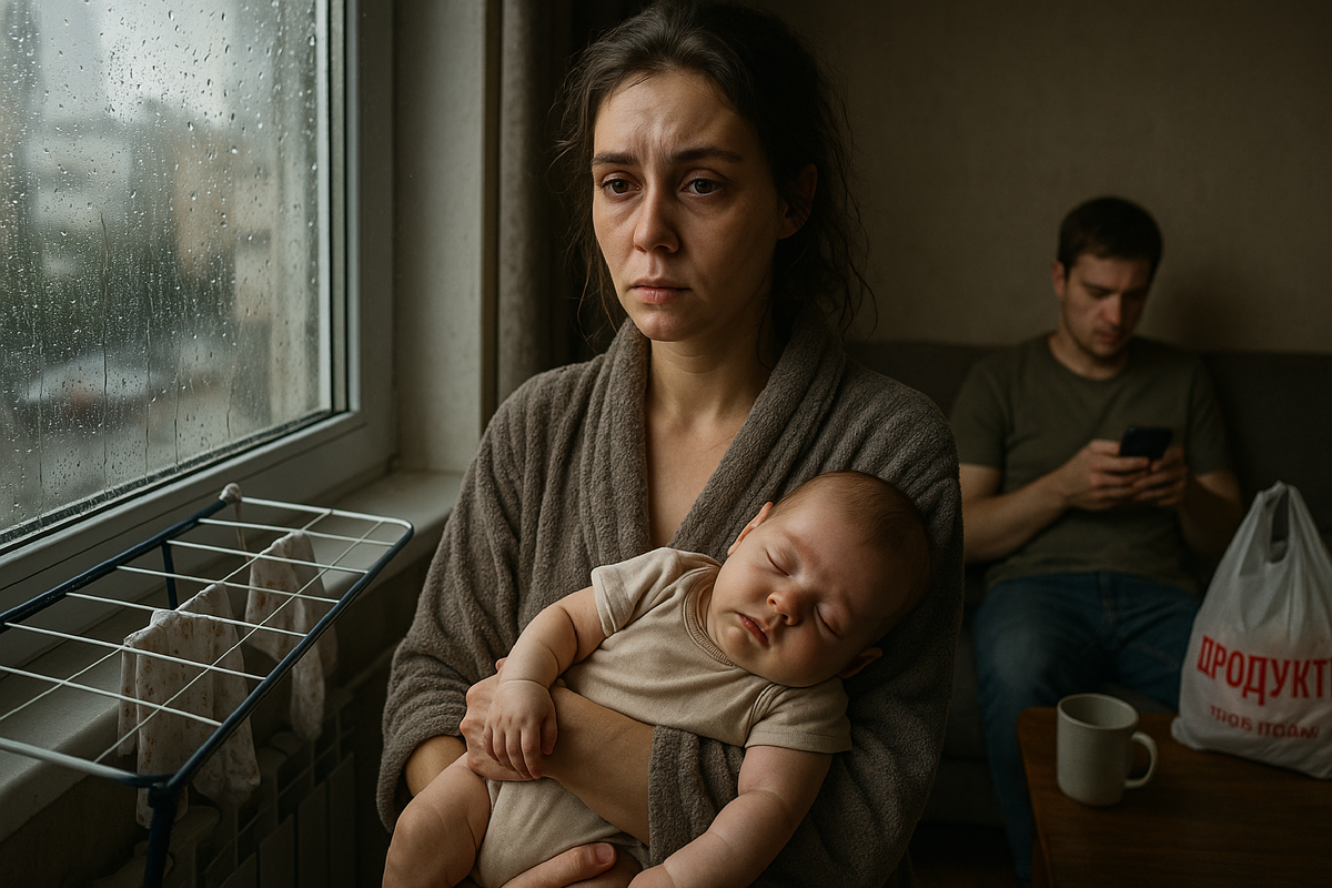 Лена стояла у окна детской, покачивая на руках трёхмесячную Машу. Малышка наконец-то заснула после часового плача, и в квартире воцарилась долгожданная тишина. За окном шумел дождь, и капли стекали по стеклу, словно слёзы. Лена чувствовала себя точно так же — усталой, измученной, готовой расплакаться от любого резкого звука.