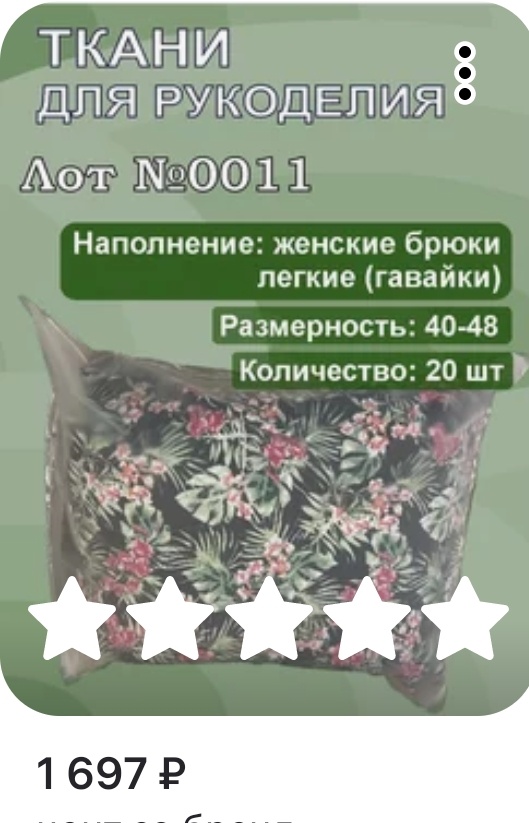 Вы приобретаете ли подержанные вещи? Например, на сайте Авито, в комиссионных магазинах или секонд-хенде? Мне иногда становится любопытно заказать посылку с товарами из секонда. На Wildberries можно заказать набор (лот) вещей, своего рода "кота в мешке", который включает в себя детскую одежду, или лот - женские юбки, или платья, или блузки. Вот пример распаковки детской одежды. Недавно получила женские брюки. Лот,как мне показалось, менее удачный, чем с детскими вещичками, но несколько брючек мне понравились. Наполнение у брюк "среднее". Цена - почти 1700р за 20шт Зато "намерялась" от души и перед зеркалом завертелась. А что ещё женщине надо? 😊 На мою неидеальную фигуру вообще сложно что-то найти. Бежевые брюки оказались 48р. Летние, очень лёгкие. Ткань хлопок, судя по всему, будет мяться сильно. Черные с манжеткой внизу, очень лёгкие, ткань - штапель. Ткань приятная, "с холодном". Красные,прямо алые брюки. Вряд-ли буду носить, они 46р, худеть надо сильно классн клас кому-то.