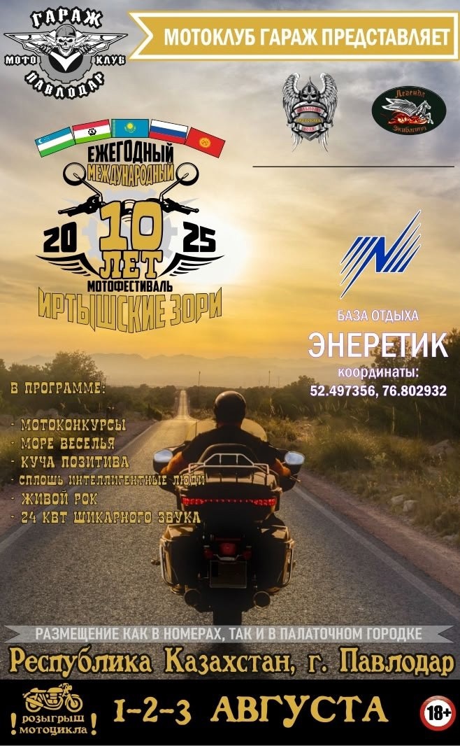 ✏️ Дальняк.рф™: Десятый мотофестиваль Иртышские зори 2025 🍺1-2-3 августа🍺 мотоклуб "Гараж" приглашает на Десятый Ежегодный Международный Павлодарский мотофестиваль "Иртышкие зори 2025"☀️ "Иртышские зори" - это море позитива, музыки и драйвого настроения, гости с разных стран и городов, новые знакомства. Не пропусти это мега событие😊 Подробную информацию выложу чуть позже, терпения ✊ +77777676798 Екатерина
