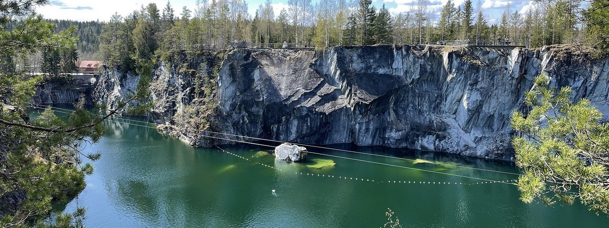 - Затопленный мраморный карьер, в воде которого отражаются сосны и скалы. При желании можно даже прокатиться над карьером на троллее.