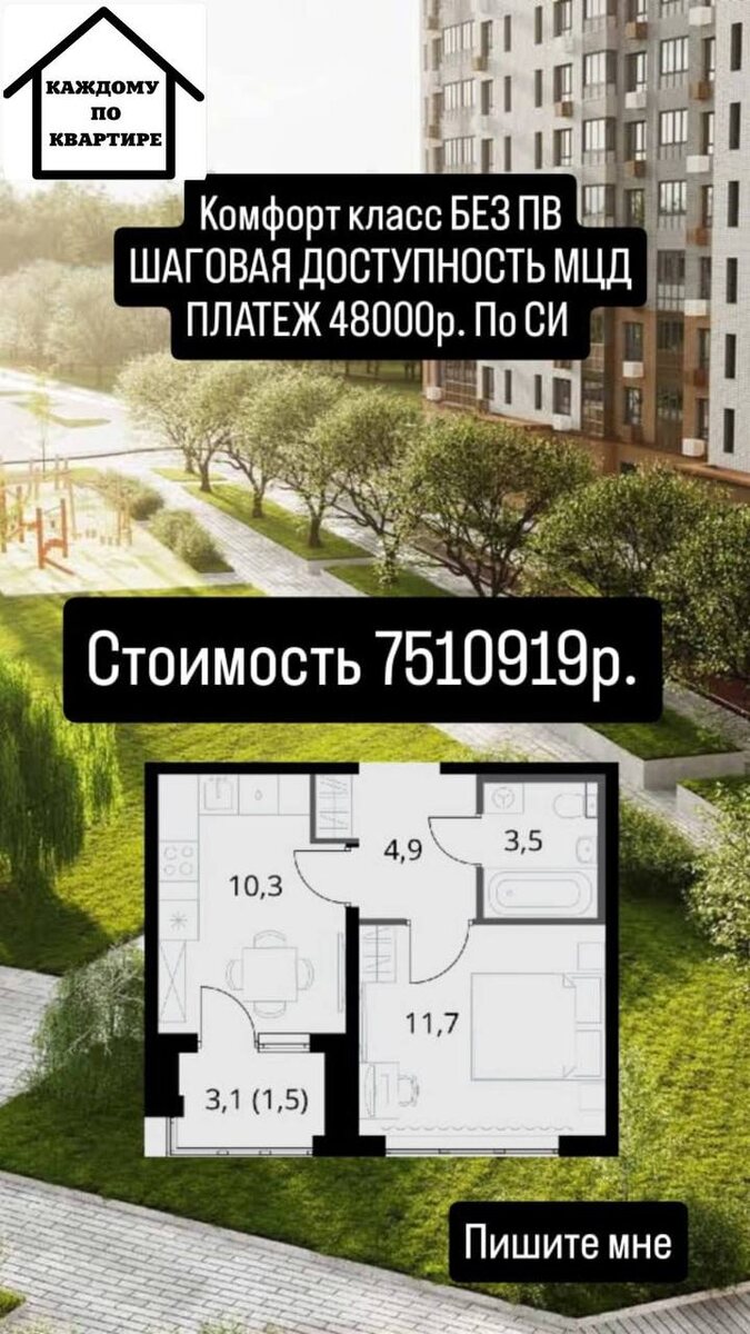 Квартира по семейной ипотеке без ПВ Жилой комплекс класса комфорт плюс, который сочетает в себе качественную инфраструктуру городской среды с неспешным ритмом загородной жизни.🧑🤝🧑 -6 минут пешком до станции МЦД-3 «Подрезково🚇, 15 минут до МКАД -подъезды с лаундж зоной, пространством для коворкинга, колясочными и лапомойками -Свои детский сад и школа с бассейном 🏊 1комн: 31,9м2🏠 ПВ: 0% Платеж: 48744р Сдача 1 квартал 2027 Каждому по квартире ПОДПИСАТЬСЯ