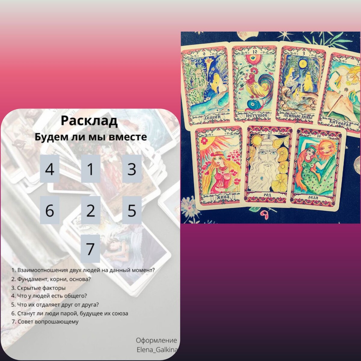 Один из самых популярных раскладов на моем канале. Для него существует много схем, сегодня я, взяла одну из самых удобных на мой взгляд. После этого, когда начнёшь читать расшифровку карт, внимательно слушай свою интуицию, только она может подсказать тебе, подходит тебе этот расклад или нет. 1. Взаимоотношения двух людей на данный момент. 9 Леший. Скорее всего сейчас отношений нет. Или они находятся в стадии, когда все немного замерло и не очень понятно, что происходит. Если у тебя есть какие-то предчувствие на счёт этих отношений, то они верные и не обманывают тебя. 2. Фундамент, корни, основа. 10 Петушок. Так как этот кощун у нас отвечает за вопросы крови, то тут можно предположить какую-то кармическую завязку, основанную на Родовых связях. Этот вопрос конечно, хорошо бы изучить более детально. Так как тут может быть очень много вариантов, почему именно такая завязка. Но вот самые расппостренные : мать - сын, муж - жена, отец - дочь. То есть в прошлом, очень далеком, вы были