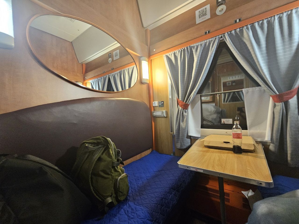 Едем из Сухума до Адлера в СВ. Счастье есть - комфортно, уютно и нет людей (кроме нас). 😁 Ехать 5 часов, но в приятных условиях. 👻