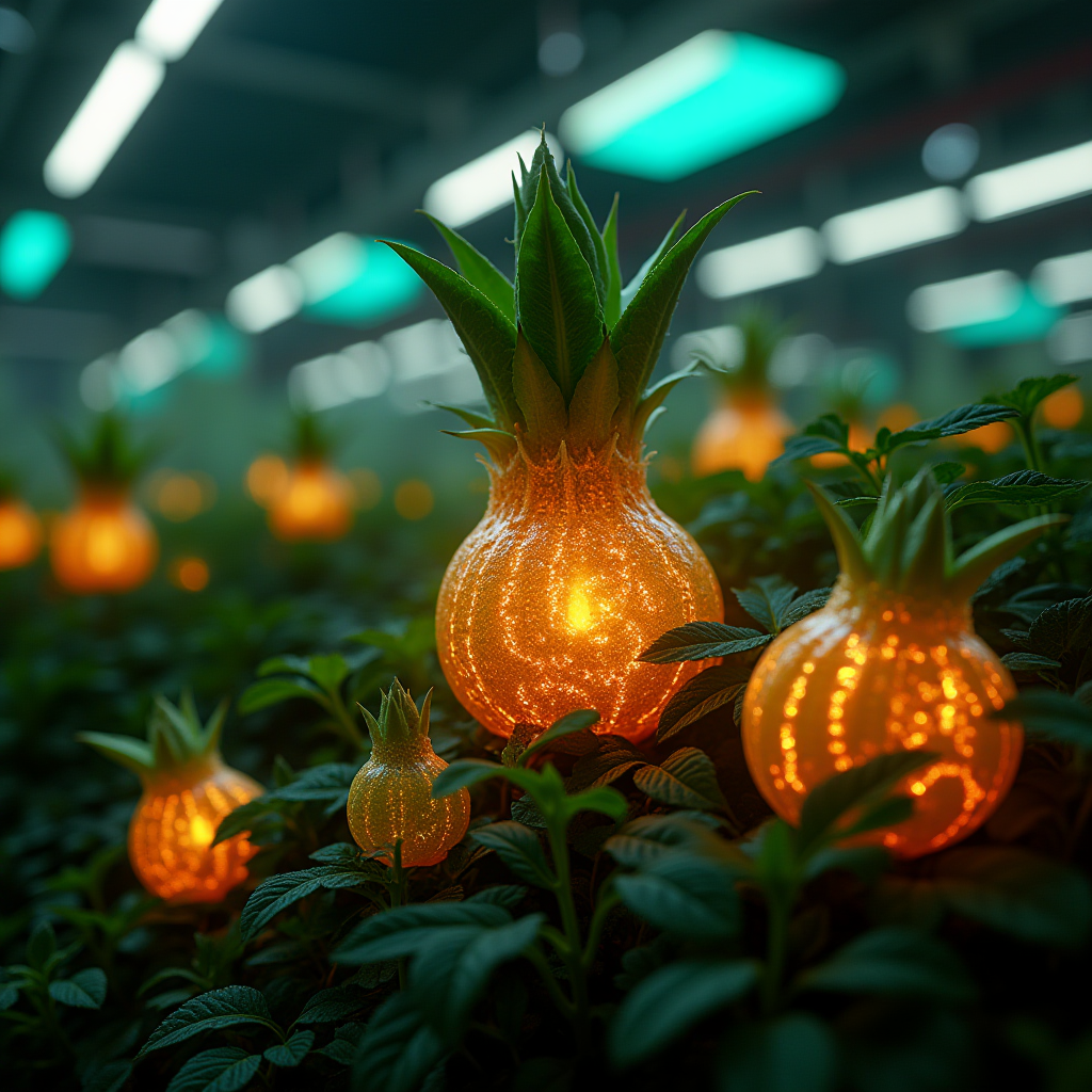 В мире, где технологии и биотехнологии стремительно развиваются, даже привычные продукты питания могут измениться до неузнаваемости. Ученые, дизайнеры и футурологи уже сегодня представляют, как будут выглядеть фрукты и овощи через несколько десятилетий. Возможно, в будущем мы будем есть прозрачные помидоры, светящиеся ягоды и овощи с встроенными микрочипами. Давайте заглянем в это удивительное будущее! Биолюминесцентные фрукты Представьте клубнику, которая мягко светится в темноте, или виноград, переливающийся неоновыми оттенками. Благодаря генной инженерии и внедрению биолюминесцентных белков (например, как у светлячков или медуз), фрукты могут стать не только вкусными, но и эстетичными. Такие продукты могли бы использоваться в ресторанах будущего для создания необычных блюд или даже в качестве естественных источников света в городских садах. Вероятно, в будущем огурцы и помидоры будут покрыты микроскопическими датчиками, отслеживающими их свежесть. Представьте: вы берете яблоко, а на