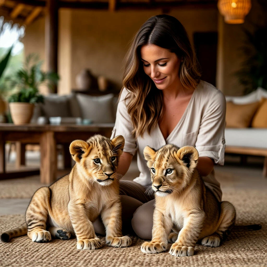 Увидев возле дома Константина помимо его машины ещё одну машину, Анна удивилась. Он не говорил, что у них будут гости. Зайдя в дом она услышала несколько голосов и какие-то шорохи, а пройдя в гостинную, замерла на месте. Её жених и двое гидов из его команды сидели на коленях рядом с двумя совсем маленькими львятами.