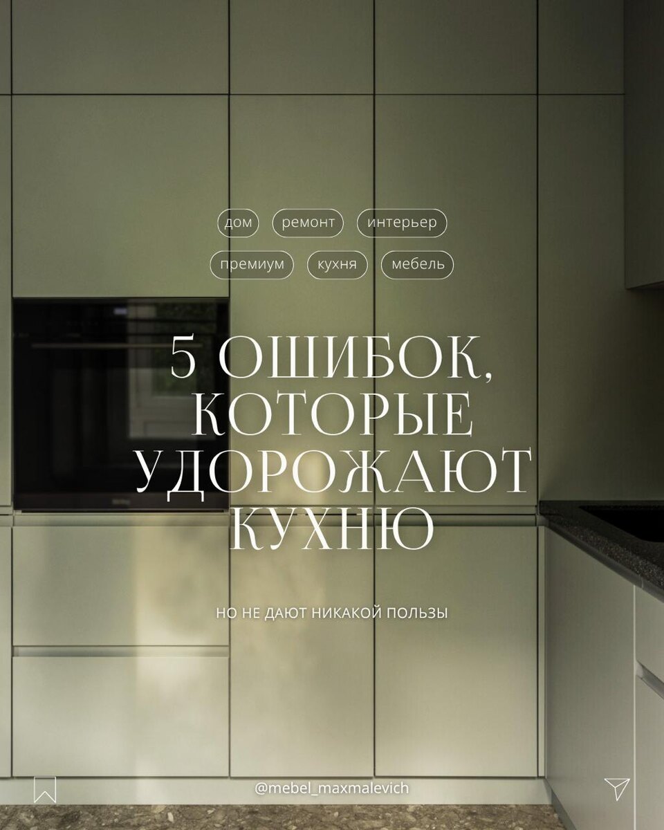 Выбираете кухню? Этот пост может сэкономить вам десятки тысяч 💸 и сделать кухню не только красивой, но и умной. Главное — знать, на чём можно не переплачивать, а где лучше не экономить. 💬 пишите в комментариях, с чем сталкивались вы А если хотите рассчитать вашу кухню — подпишитесь и напишите @CR_MaxMalevich “Хочу расчёт кухни” MaxMalevich — дизайн, воплощённый в точности.