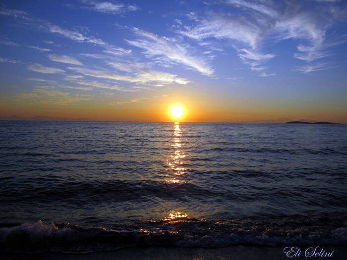 Золотое руно Закат над Ионическим заливом... Такая красота и благодать! Взойдёт Луна торжественно над Миром; её, в который раз, я буду ждать. А Солнце опускается всё ниже... ещё немного - скроется оно. И лижет море шар багровый...,лижет, смывая в воду Ясона руно. И этот миг всегда мне очень дорог: забыться между "завтра" и "вчера", и, отодвинув дел ненужных, ворох, увидеть как вращается Земля. * * * Иллюстрация автора. © Copyright: Эли Селини #стихи #стихотворения #море #ионический_залив #Греция #луна #философия ##эли_селини