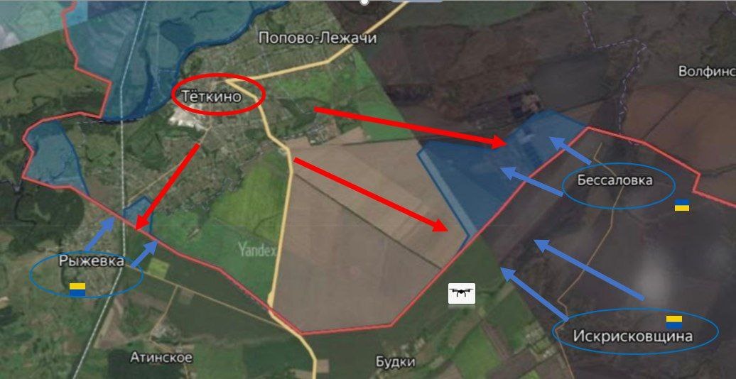 Враг продолжает ежедневно предпринимать попытки прорыва в Курскую область. Украинские журналисты уже ввели понятие "Тёткинские грабли". Смысл понятен: ежедневные бесплодные штурмы в районе с.Теткино с многочисленными потерями для ВСУ, но упорно повторяющиеся на следующий день.