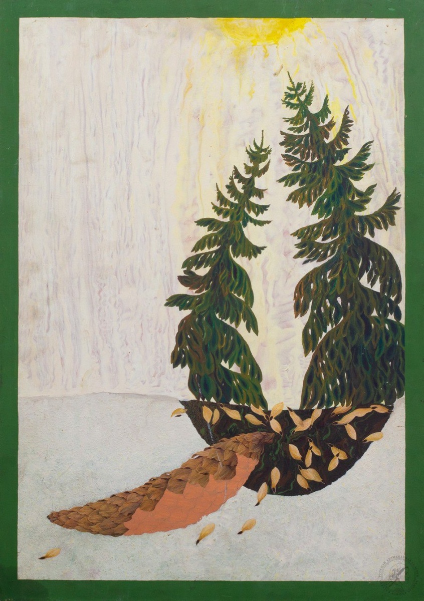 Русская антикварная галерея Сайт: rus-gal.ru #Миронов А.С - #Картина «В лесу» #СССР, 1980-е годы. Бумага, масло, оргалит. 57 Х 40 см #Символизм, #Пейзаж Подробнее: https://rus-gal.ru/works/kartina-v-lesu-2/