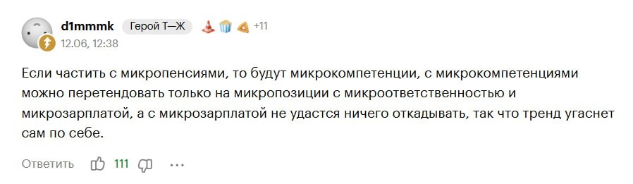 Неужели вот так и придется работать до самой пенсии? Поклонники идеи микропенсий не готовы ждать — и предлагают делать перерыв каждый раз, когда на него хватает средств. ➕ Такой подход позволяет больше наслаждаться жизнью и уменьшает риск выгорания. ➖ Остановки в профессиональном развитии каждые пару лет могут серьезно помешать трудоустройству в будущем. Приходите обсудить в комментариях: https://t-j.ru/tg/micro-retirement/