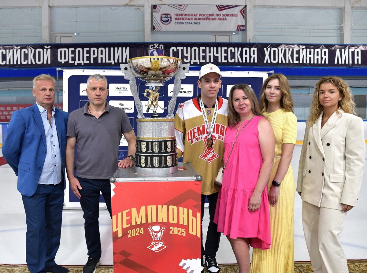 🏆 Встреча с обладателем Кубка Харламова Фёдором Храповым состоялась в Ледовом дворце спорткомплекса «Дмитров»! 🥅 МХК «Спартак» завоевал Кубок Харламова в сезоне 2024/2025, и это событие стало настоящим праздником для всех любителей хоккея! Финал был самым посещаемым в истории OLIMPBET Чемпионата Молодёжной хоккейной лиги — 57 537 зрителей! Традиция путешествовать с завоёванным Кубком — особая честь для чемпионов. Хотя это и неофициальная практика, она давно стала любимой традицией в спортивном мире. Победители получают возможность привезти трофей в родной город, чтобы разделить радость победы с теми, кто поддерживал их с первых шагов в спорте — с семьёй, тренерами, болельщиками. Это уникальный шанс не только показать кубок, но и вдохновить новое поколение спортсменов. 🤩 На церемонии открытия присутствовали начальник Управления физической культуры и спорта Дмитровского муниципального округа Анна Стародубова, родные Фёдора и его первый тренер — Дмитрий Терехов. 📸 В рамках меропр