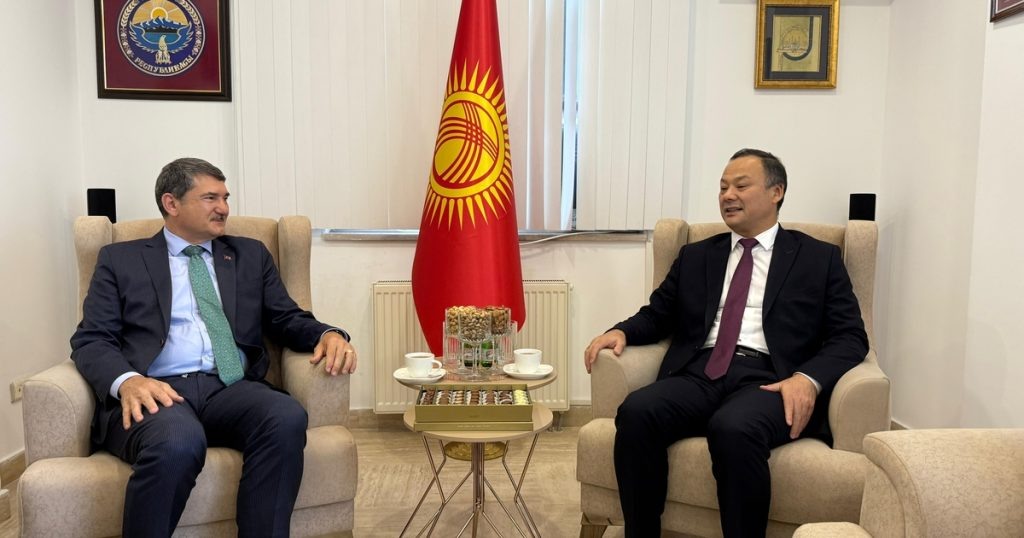 Түркиянын президентинин башкы кеңешчиси Чагры Эрхан менен Кыргызстандын элчиси Руслан Казакбаев эки өлкөнүн стратегиялык өнөктөштүгүн бекемдөө жана жогорку деңгээлдеги өз ара сапарларды уюштуруу сыяктуу маселелерди талкуулашты. 🇰🇬 Кыргызстан менен Түркиянын ортосундагы ар тараптуу стратегиялык өнөктөштүктү бекемдөө жана өнүктүрүү боюнча келечектеги пландар талкууланды. 🤝 Кыргызстандын Түркиядагы элчиси Руслан Казакбаев жана Түркиянын президентинин башкы кеңешчиси Чагры Эрхан эки тараптуу кызматташууну талкуулашты. 🌍 Жогорку жана жогорку деңгээлдеги өз ара визиттерди ишке ашыруу маселелерине өзгөчө көңүл бурулду. 💼 Соода-экономикалык жана маданий-гуманитардык чөйрөлөрдөгү биргелешкен долбоорлорду ишке ашыруу боюнча кызматташуу талкууланды. 🔗 Бул жолугушуу эки өлкөнүн ортосундагы мамилелерди мындан ары да бекемдөөгө жана өнүктүрүүгө багытталган.