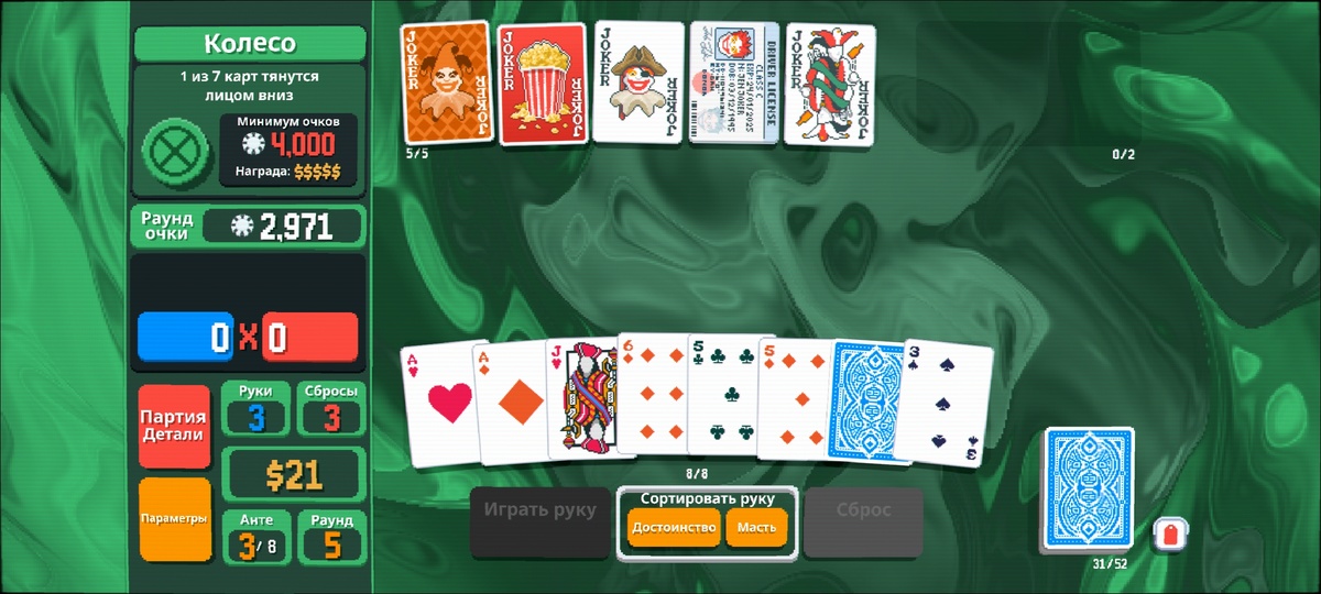 Суть простая: колода, ставки, комбо. Но выстроено всё так, что хочешь попробовать ещё и ещё. Если кому-то нужно сравнение — вообразите смесь Slay the Spire и стандартного покера, только без занудства настоящих картёжников.