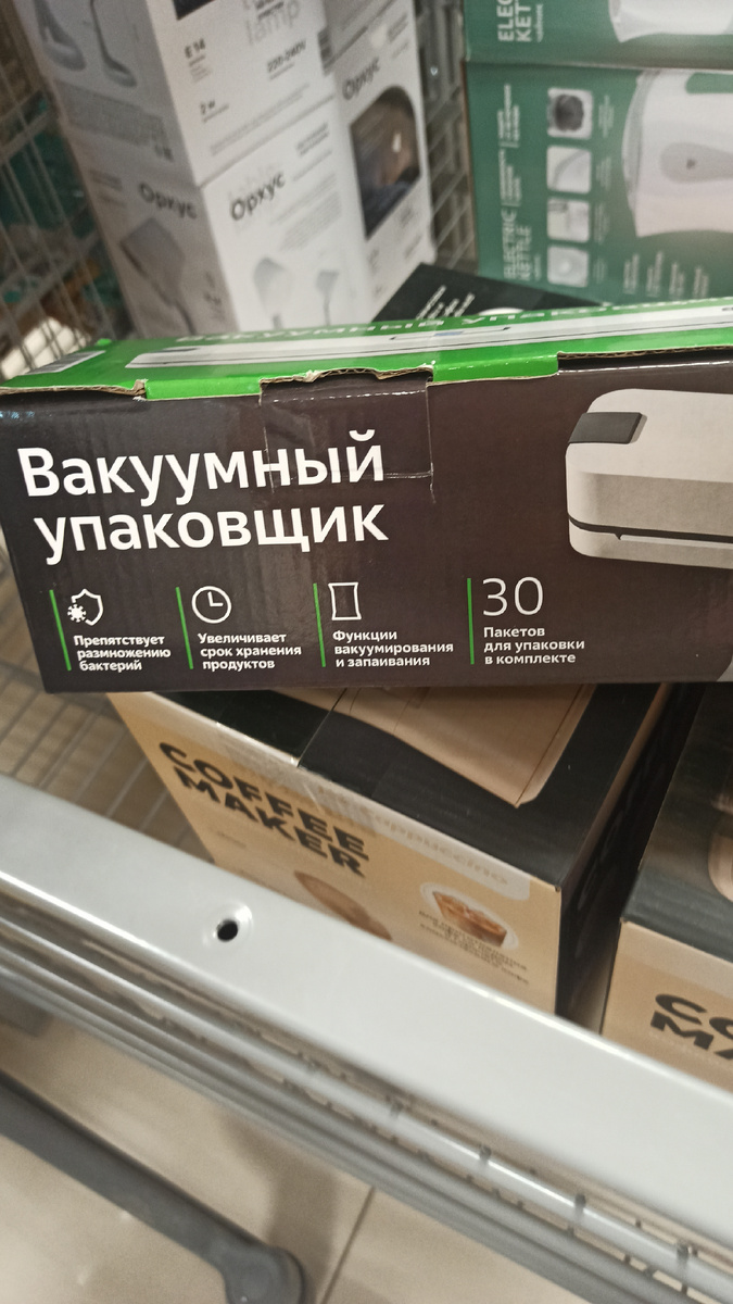 Увеличивает срок хранения продуктов (точные цифры – на упаковке!), борется с бактериями и умеет **вакуумировать и запаивать**. Готов к работе сразу: в комплекте – **30 пакетов для упаковки**. Полезный гаджет для запасливых хозяев!