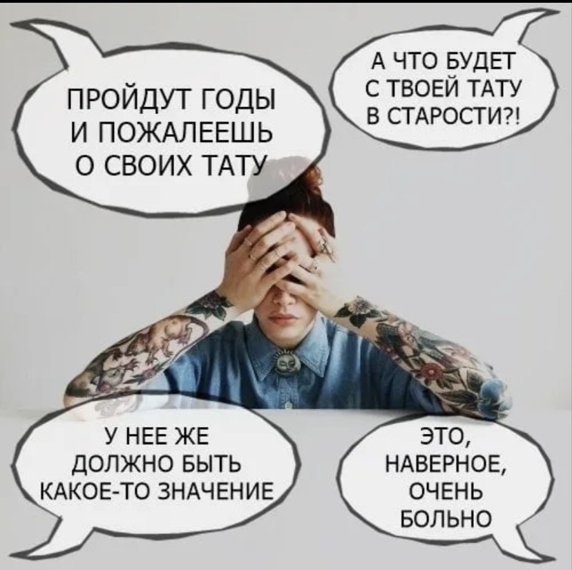 Отношение у многих спорное к такому виду украшения тела. Совдеповский менталитет завис в нашей стране на долгие годы. И часто татуированные люди могут слышать в свой адрес : « забитый иконостас, синий, грязный,сидевший, отстойный». Но вы заметили, сейчас очень много татуированных людей любого возраста. Это конечно не показатель, что это правильно. Как говорится «моё тело— моё дело». Психиатрия считала страсть к татуировкам болезненным проявлением личности, психическим отклонением. Сейчас эта концепция медленно, но меняется. Есть множество вариантов причин, почему же человек «пачкает» своё тело. Самовыражение, привлечение внимания, недовольство своим телом, протест против чего либо, какой то символизм. Или адреналиновая зависимость от болевых ощущений, мазохизм. Я не делала тату через боль. Полно специальных замораживающих средств, когда не нужно корчиться от боли. Я , как татуированный человек, скажу. Нет никаких особых причин и психических отклонений. Это просто свой стиль жизни и