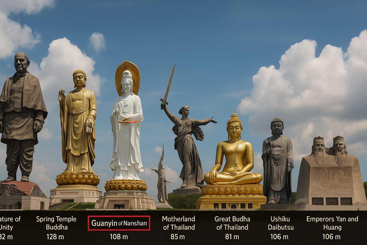Когда туристы впервые видят стометровую статую на юге острова Хайнань, они замирают: три лика, нежное лицо, золотой венец, а сама она будто смотрит сквозь время. Это Гуаньинь — одно из самых почитаемых божеств в восточной Азии. Но кто она на самом деле: буддийский Бодхисаттва или богиня, в которую верят миллионы женщин? Гуаньинь в буддизме — воплощение сострадания. Её имя означает "та, кто слышит крики мира". В китайской культуре Гуаньинь изначально изображалась в мужском облике, но уже с X века её стали представлять как женщину — мягкую, материнскую, близкую. Это редкий случай трансформации образа: буддийский канон + локальные культурные особенности = культ, способный объединить религию и повседневность. Статуя Гуаньинь в Наньшане (высота — 108 метров) — не только архитектурное чудо, но и символ. Она обращена к суше, морю и югу Китая, словно охватывает страну своим состраданием. Три лика — три состояния: мир, мудрость, защита. Сюда едут за успокоением, за силой, за верой, даже если ты