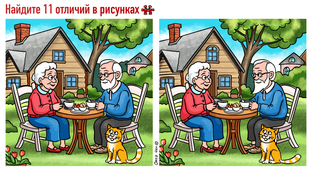 Тест памяти и внимания для всей семьи. 11 отличий на картинках про чаепитие в саду.