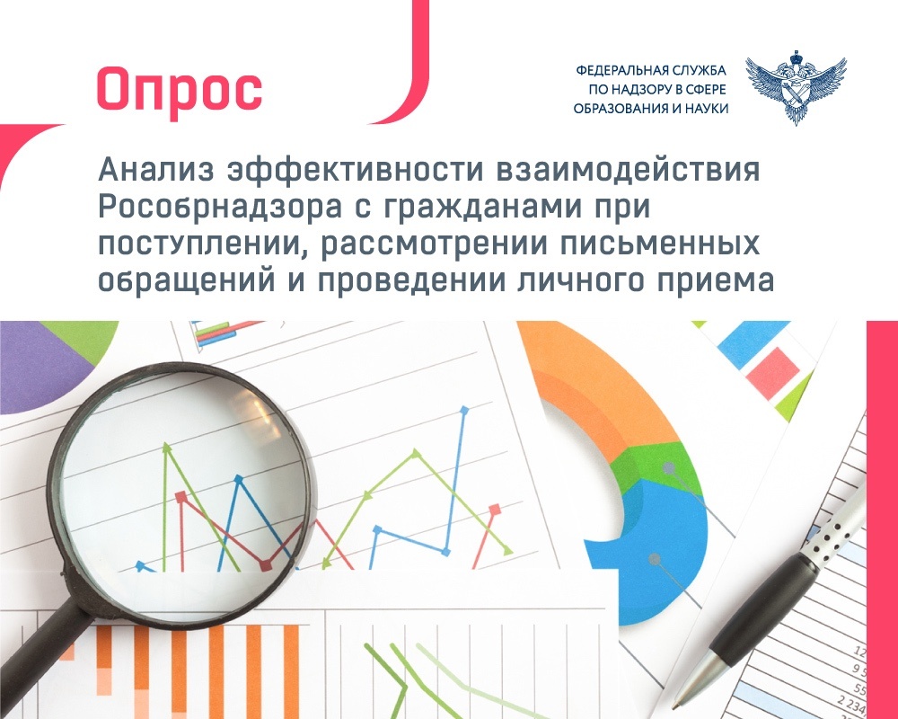 Федеральная служба по надзору в сфере образования и науки проводит опрос, посвященный анализу эффективности взаимодействия Рособрнадзора с гражданами при поступлении, рассмотрении письменных обращений и проведении личного приема. Опрос доступен на Платформе обратной связи Единого портала государственных услуг. Участие в нем займет всего несколько минут. Ваши ответы помогут нам понять, насколько легко и удобно обращаться в Рособрнадзор лично и письменно. Мы также узнаем о проблемах, с которыми вы сталкиваетесь при отправке обращений, заявлений и жалоб через электронную приемную на нашем сайте. Поделитесь своим мнением и помогите сделать нашу работу лучше! Ссылка на опрос: https://pos.gosuslugi.ru/lkp/polls/527787/?utm_source=widget&utm_medium=federal&utm_campaign=obrnadzor.gov.ru&utm_term=6229_1047796344111_7701537808_770201001