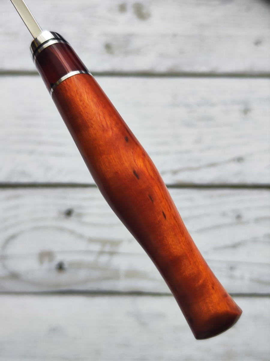 ❗ ХАРАКТЕРИСТИКИ: (5000₽/шт) Сталь Х12МФ Твёрдость 61-62 HRC Рукоять карельская берёза Вставка киринит Тип спуска линзовидный Сведение 0,3 мм Длина клинка 142 мм Длина рукояти 118 мм Ширина клинка 27 мм Толщина в обухе 3,8 мм Монтаж всадной Вес 120 г 🔥 Финские ножи пуукко, изготовленные из высококачественной кованой стали Х12МФ, представляют собой сочетание традиционного мастерства и современных технологий. Сталь Х12МФ известна своей прочностью и отличной стойкостью к коррозии, что делает эти ножи идеальными для использования в различных условиях, будь то охота, рыбалка или повседневные задачи. Доступна доставка службами CDEK и Почта России по всей стране и ближнему зарубежью. ✍️ По вопросам приобретения обращайтесь @matbel7