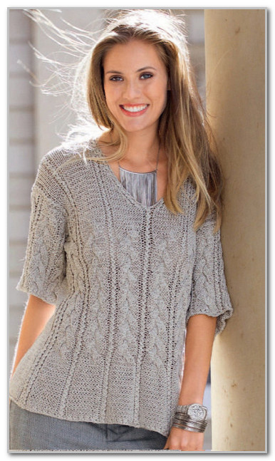 Легко расклешенный крой, косы подчеркивают линию талии, V-образный вырез подчеркивает грудь — этот легкий пуловер с короткими рукавами демонстрирует повседневный шик с гарантией комфорта.
