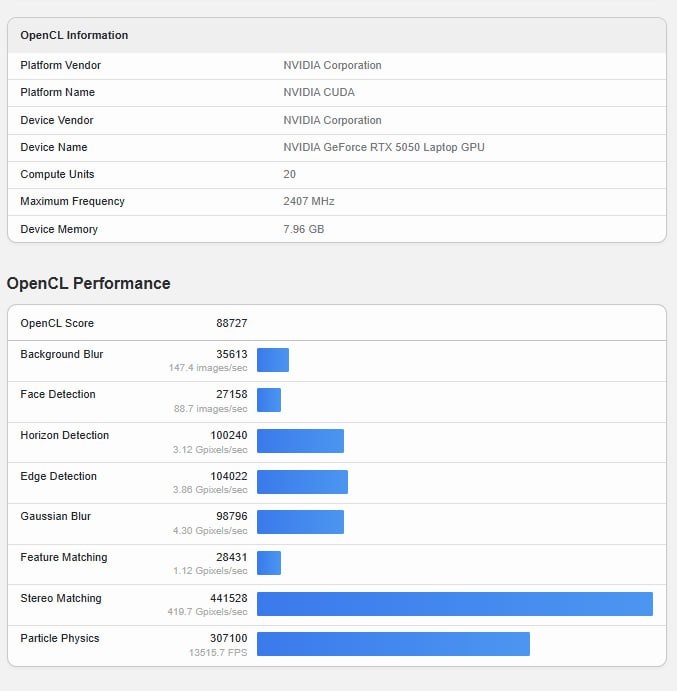Мобильная RTX 5050 набрала 88 727 баллов в Geekbench OpenCL — почти на одном уровне с мобильной RTX 4060 (89 206