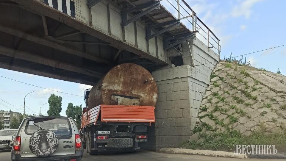 Сегодня в районе 909 квартала под железнодорожным мостом застрял КАМАЗ