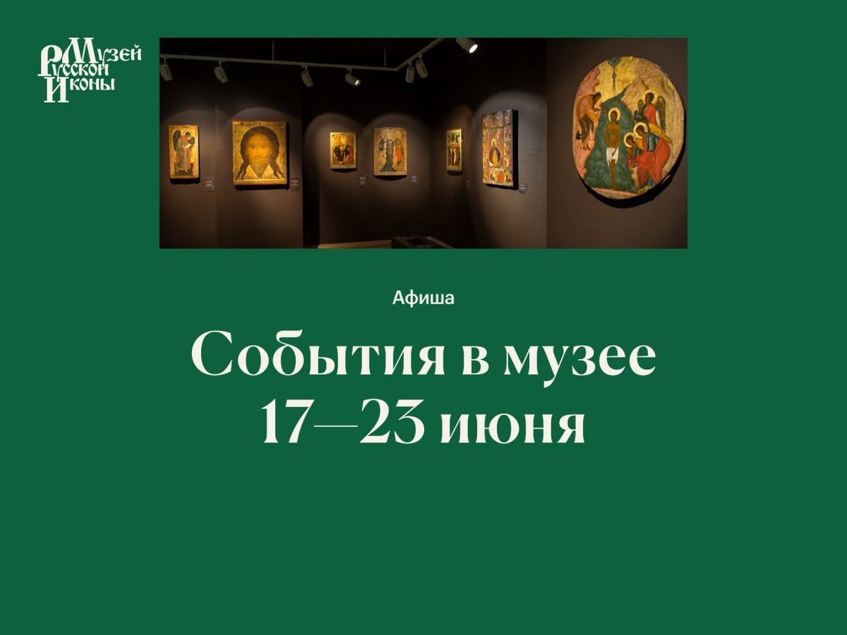 События в музее | 17–23 июня Публикуем афишу на неделю и ждем вас в гости!☀️ • Выставка «Красота в глазах смотрящего» До 20 июля, посетить можно по графику работы музея. Экскурсии Все экскурсии проходят бесплатно, по записи, число мест ограничено. • Обзорная экскурсия «Икона сквозь века» 19, 20, 21, 22, 23 июня • Экскурсия «Судьба иконы» 21, 23 июня • Экскурсия «Как устроена икона» 19, 21, 23 июня • Экскурсия по выставке «Красота в глазах смотрящего» 17, 19, 20, 21, 22, 23 июня • Экскурсия «Жемчужины древней части собрания» 20 июня • Экскурсия «Искусство и культура старообрядцев» 19, 22, 23 июня • Экскурсия «Византийское и поствизантийское искусство» 22 июня • Экскурсия «Искусство и культура Эфиопии» 20 июня 👉 Переходите по ссылкам в названии, записывайтесь и приходите! Если не видите на сайте нужную дату, значит, билеты на нее закончились. Расписание экскурсий на предстоящую неделю выкладываем по понедельникам.