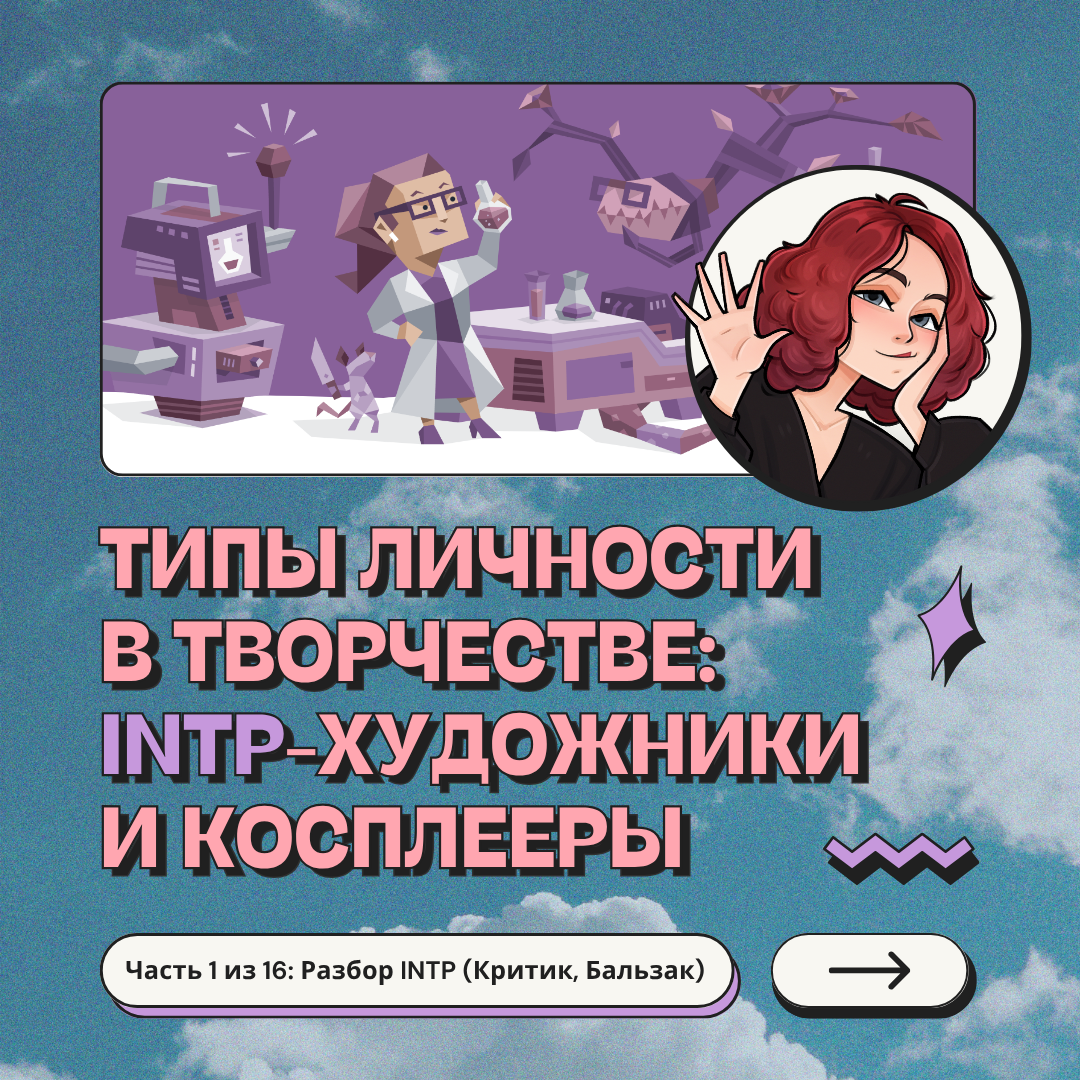 Я сама INTP и мне было особенно интересно разобраться, как этот тип проявляется в творчестве, косплее и на маркетах. INTP — это интровертные мыслители, которые по жизни ищут логику, глубину и смыслы во всём, включая любимые фандомы. Это один из самых редких типов, но в творческой среде встречается подозрительно часто 👀 В карточках я собрала: