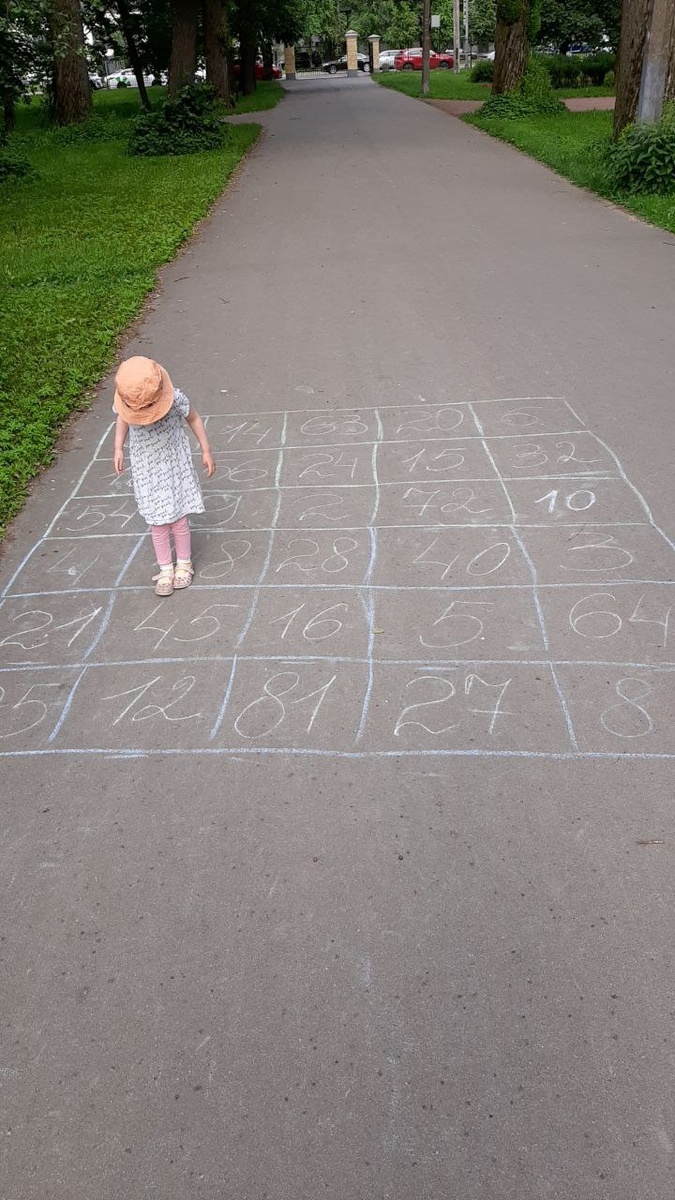 Летние уличные математические игры🙂 Пару недель назад один из вариантов этой игры был в Родительском клубе, а сегодня мы нашли вон что в Удельном парке🔥 Явно, кто-то практиковал таблицу умножения! Летом в Родительском Клубе появляются уличные игры, кое-что можно найти и в канале по тегу #играем_в_математику_на_улице🙃 Пишите мне @flame_n_go за доступом в Родительский Клуб и веселых вам летних математических игр с детьми! (С) Перельманцы: игровая и занимательная математика детям
