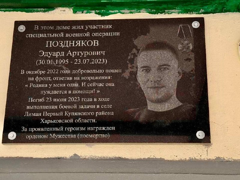 В Сергиевом Посаде заменили мемориальную доску участнику СВО Эдуарду Позднякову. На первоначальном варианте были допущены ошибки. 28-летний Эдуард Поздняков погиб в июле 2023 года в бою за село Лиман Первый в Купянском районе Харьковской области. 7 июня памятную доску торжественно открыли, но жители округа заметили, что в тексте есть ошибки и возмутились в социальных сетях. В настоящее время все ошибки исправлены: «В этом доме жил участник специальной военной операции ПОЗДНЯКОВ Эдуард Артурович (30.01.1995 - 23.07.2023) В октябре 2022 года добровольно пошел на фронт, ответив на возражения: « Родина у меня одна. И сейчас она нуждается в помощи! » Погиб 23 июля 2023 года в ходе выполнения боевой задачи в селе Лиман Первый Купянского района Харьковской области. За проявленный героизм награжден орденом Мужества (посмертно)» Памятную доску установили на фасаде дома, где жил Герой по инициативе родственников и жильцов. Табличка была заказана и изготовлена частными лицами. Со слов зака