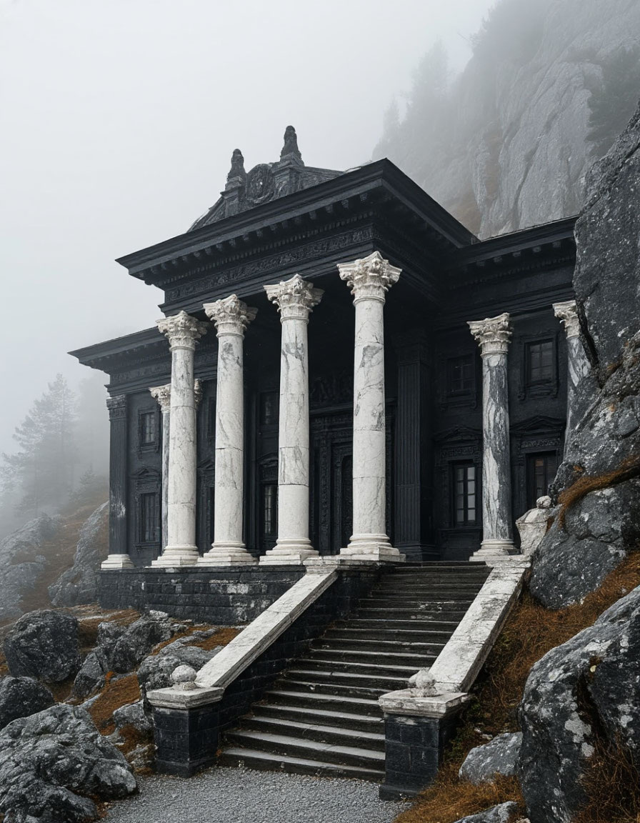 Поле с цветами исчезло и на его месте появился величественный и жуткий своей неживой красотой дворец: черный и украшенный белыми каменными каллами. Никакого оттенка больше, как будто их и не было в этом мире.