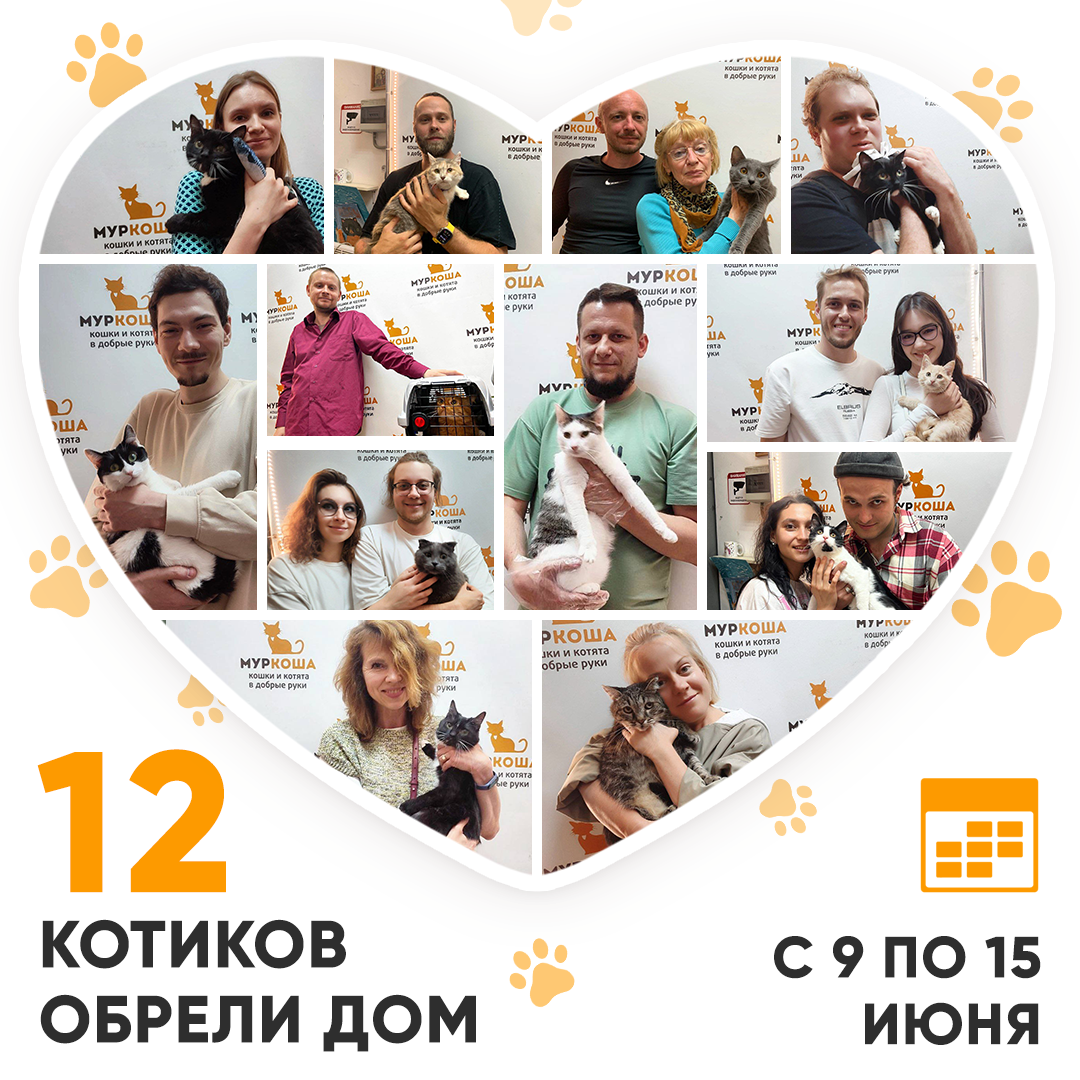 🥳 Итак, за прошедшую неделю домашними и любимыми стали 12 котиков!