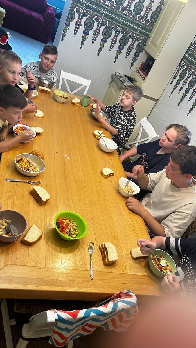 Ужинаем обедом) Плюс салат из овощей В этот раз ребята не такие голодные. Только шестеро ребят съели второе на обед. А после активного дня, смели всё под чистую👍 Через пол часа будем готовиться к вечернему костру и играм на гитаре и традиционный Алиас