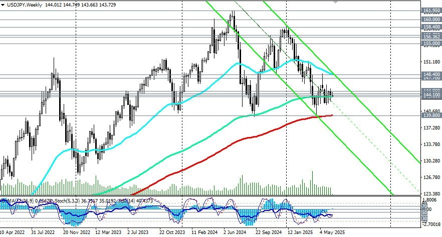 На фоне слабеющего доллара пара USD/JPY опустилась к отметке 143.75, после пробоя важных краткосрочных уровней поддержки 144.38 (ЕМА200 на
