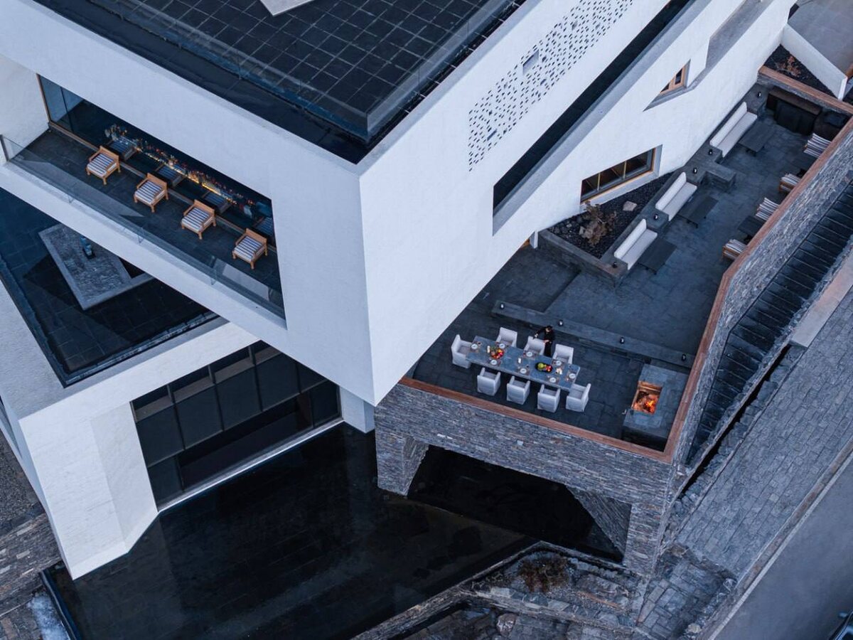 Архитектура и природа ⬛️ Всегда интересно смотреть, как архитекторы вписывают здания в природный ландшафт. Сегодня расскажем про такой пример — отель Poodom Deqin Meri в Китае. Архитекторы: BUZZ/Бюро Цзыю ▶️Отель расположен на высоте 3600 метров на смотровой площадке Вунонгдинг. Отель расположен между двумя высокими горными хребтами. С одной стороны отвесная долина обрывается на сотни метров вниз, почти вертикально. ▶️Отель Poodom был задуман как сооружение, гармонирующее с окружающей средой, — без символических жестов, чтобы его суть была связана с физическими и духовными особенностями этого места. ▶️Архитектура простирается горизонтально, отражая горные хребты, а ее чистые оттенки и материалы местного производства растворяются в тибетском ландшафте.