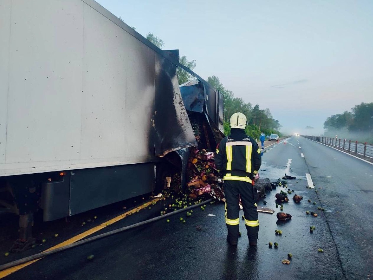 🍏 «Фруктовый» пожар на трассе! Сегодня ночью на 95-м км автодороги М-1 «Беларусь» вспыхнул рефрижератор, гружённый фруктами. 🔥🚛 Огненное ЧП разыгралось около 2:30 — ящики с плодами загорелись моментально! Но расчёты 308-й пожарно-спасательной части Мособлпожспас и ФПС оперативно взяли ситуацию под контроль. 👨🚒🧯 Особая находчивость — у водителя: он успел отсоединить кабину и спасти тягач от огня! 🚛💨 ❗Важно: при возгорании не пытайтесь тушить сами — сразу звоните спасателям! По информации ГКУ МО «Мособлпожспас»