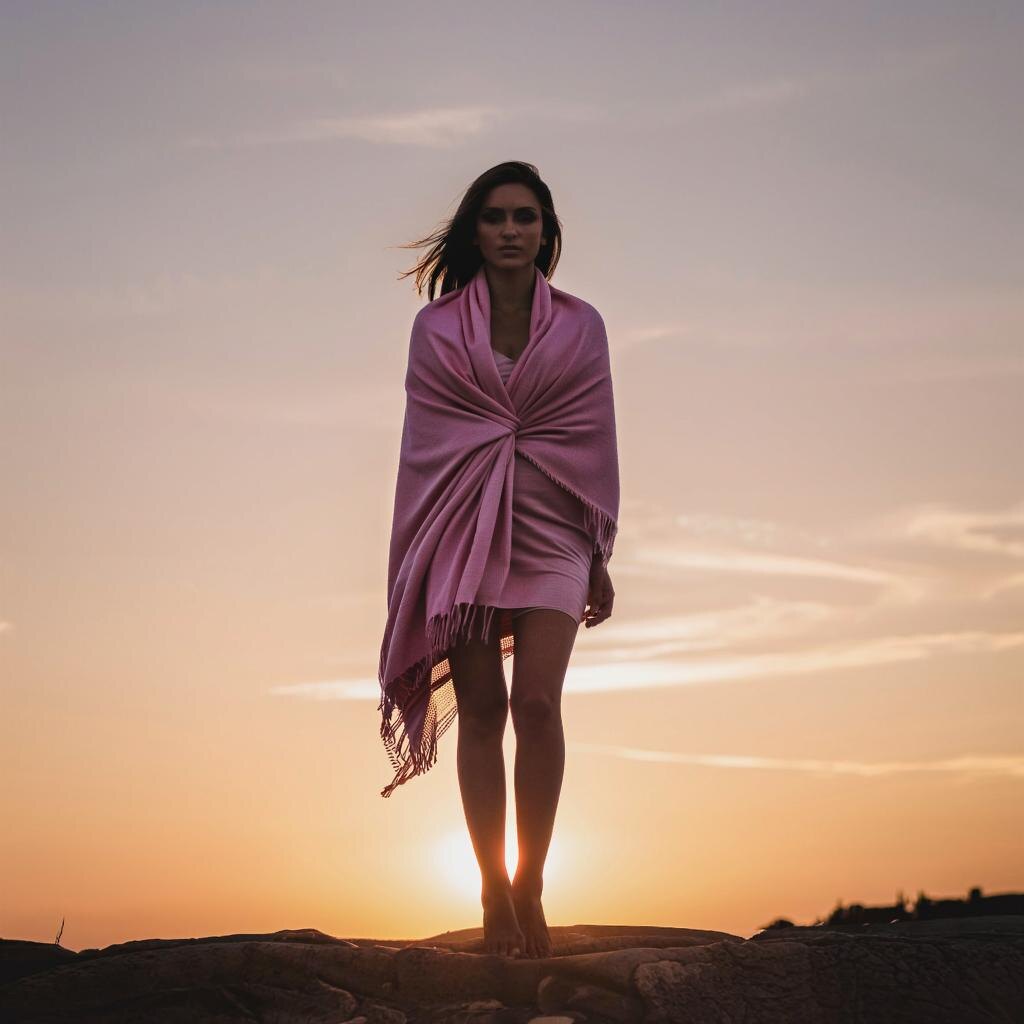 Шёлковое платье нежно скользит вдоль тела, словно лёгкое дыхание летнего ветра. Оно ласково охватывает меня своим нежным прикосновением, оставляя едва уловимый шлейф ароматов цветущего сада — аромат жасмина и розы сплетаются в сладкую симфонию любви и страсти. Розы кружатся вокруг моего силуэта, распускаясь роскошью бархатистых лепестков, превращая каждую линию тела в утончённый рисунок женственности. На фоне пурпурного неба полыхают последние отблески солнца, окрашивая мир мягким свечением вечерней прохлады. Лёгкий ветер играет волосами, рассыпая пряди золотистого шелка по плечам, будто невесомые солнечные лучи коснулись моей кожи последним прощальным поцелуем дня. Спускаю ноги с края высокого балкона старого особняка, плавно ступая босиком по прохладному мрамору лестницы. Шаги мягкие, бесшумные, мелодичные — каждый звучит как звук волшебной флейты, призывающей загадочную ночь принять меня в свои таинственные объятия. Закат смотрит мне вслед, погружаясь в мои глаза удивлённым восхище
