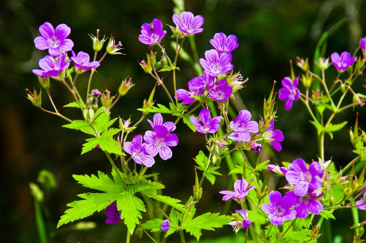 Если вы в поиске простого, неприхотливого растения, которое гармонично впишется в цветник, но при этом, не перетянет на себя внимание, а лишь придаст ему естественности и подчеркнёт красоту других растений, то стоит обратить внимание на лесную герань. Это многолетнее травянистое растение часто можно встретить в лесах, на полянах и опушках. В высоту оно достигает от 25 до 60 см. Цветки собраны в рыхлые соцветия, чаще всего они окрашены в оттенки розового, фиолетового или пурпурного, но бывают растения с белым окрасом цветков. Цветение приходится на июнь-июль. Плоды, которые созревают в августе, по форме напоминают птичий клюв. Сейчас выведено множество декоративных сортов, которые идеально подходят для посадки в саду. Они отличаются разнообразным окрасом цветков и более длительным периодом цветения, иногда повторным. Лесная герань, как и в естественных условиях произрастания, предпочитает расти в лёгкой полутени, возможна посадка на участках с рассеянным солнечным освещением. К почв